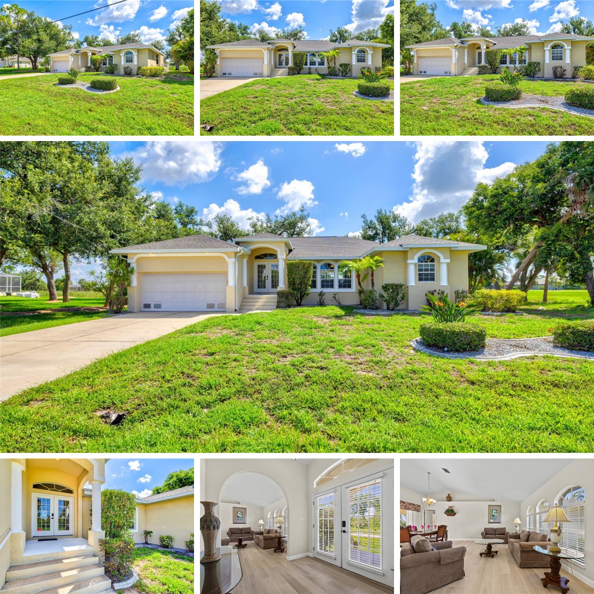 REDUCED PRICE!!! THE BEST PRICE ON THE MARKET for this spacious FURNISHED TURNKEY POOL HOME in the FIVE GOLF COURSES COMMUNITY OF ROTONDA WEST features a DOUBLE MASTER SUITE that is perfect for having guests or even an in-law space! With an INCREDIBLE VIEW ON THE LAKE AND THE GOLF COURSE (You have the view, the golfers not!), this stunning home will capture your attention with over 2300 square feet of living space, sitting on almost a 1/2 acre, featuring 2 separate living areas, a kitchen fit for a chef, and a lanai area that will wow you. The impressive open design includes a spacious kitchen with tons of counter space, a spacious breakfast nook/eat-in kitchen, and a huge breakfast bar. The home features two separate living areas. The main living room overlooks the spacious lanai and beautiful pool, with views of the lake and golf course. The private family room offers vaulted ceilings and easy access to the kitchen and pool area. The main master bedroom is spacious and inviting, with brand new carpeting 6/2025, 2 ample walk-in closets, and a wonderful bathroom with dual sinks, garden tub and, separate walk-in shower. The second master suite is spacious with brand new quality carpet (6/2025), with a direct access to the pool area, the master bath features a walk-in shower, vanity and toilet. The third- and fourth-bedrooms share, a full pool bath, and access to the lanai and pool area. These 2 additional guest bedrooms are spacious and inviting with lots of walk-in closet space. You will fall in love with the screened lanai area, offering plenty of space to enjoy outdoor living and the beautiful yard. The covered lanai is wide and is set up to have many guests around the table, the pool is over sized +2.6'. The inside utility room has a washer and dryer as well as a utility tub. The property has been professionally decorated and landscaped and is in a deed restricted neighborhood. All the flooring has been redone in June 2025, porcelain tiles throughout except the bedrooms where the owner has selected a high-quality carpet. All furniture and household items included in the purchase, WYSIWYG -What You See Is What You Get-! New roof in 2022. Perfect for a large family or for an investor thanks an excellent rental history. A great and quiet location on a dead-end street with only local traffic. This beautiful home is only 10 miles from the pristine tropical beaches of the Gulf of Mexico, one hour from international airport from Sarasota and Fort Myers. Just moments away from golf, boating, fishing, shopping and so much more.