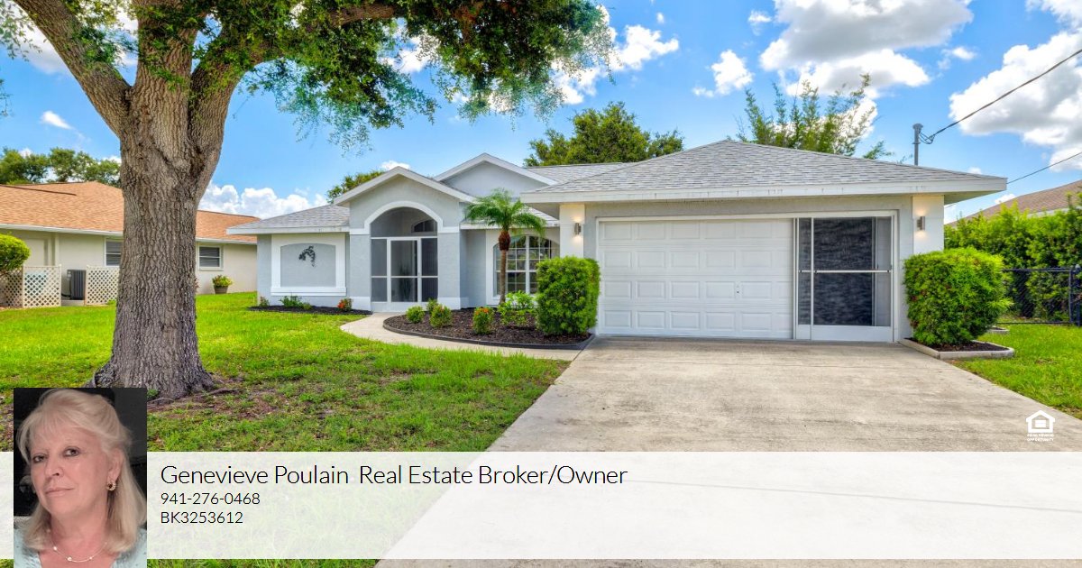 NON-FLOOD ZONE -TURNKEY WATERFRONT POOL HOME IN GOLF COMMUNITY- (5 Golf courses). Tastefully decorated this house features 3 bedrooms and 2 full baths with an open living and dining room combo. The kitchen and the 2 bathrooms have been stylishly renovated. The kitchen is spacious with large dinette area with bay window. The master bedroom is very spacious with direct access to the lanai and pool area. With high cathedral ceilings, the great room is roomy, bright and light, is opening on a very large covered lanai with panoramic view on the canal. All the outside has been repainted last year. Tiles flooring and bedrooms carpet have been professionally cleaned mid of June 2025. The inside utility room has top of the line front loading washer & dryer as well as a utility tub. This beautiful home is only 10 miles from the pristine tropical beaches of the Gulf of Mexico, one hour from international airport from Sarasota and Fort Myers. Just moments away from golf, boating, fishing, shopping and so much more.did I mentioned the tiled screened porch to welcome your guest? New roof, new A/C, new pool cage. This home is spotless, perfectly located and decorated, and ready to move in, if it is for your family or for an investment, the property is definitively the best choice at a very competitive price. Owner named it “Serenity Now” as it is such a peaceful neighborhood! This gorgeous home is only 10 miles from the pristine tropical beaches of the Gulf of Mexico, one hour from international airport from Sarasota and Fort Myers. Just moments away from golf, boating, fishing, shopping and so much more.