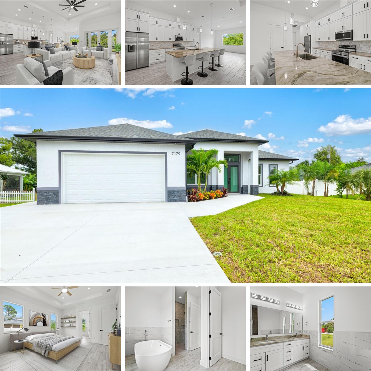 Step into modern elegance in this stunning new construction home in desirable Englewood. Boasting 3 bedrooms, 3 bathrooms, and a private office across 2,232 sq ft, this residence features soaring 12-foot ceilings, 8-foot doors, custom cabinetry, and exquisite stone countertops. Elegant tile flooring flows throughout, complemented by hurricane-rated aluminum impact windows, ensuring both beauty and peace of mind.